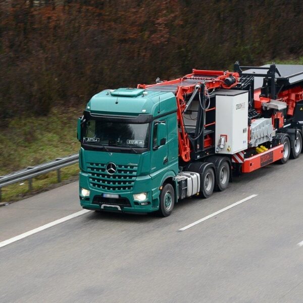 The first wheel mobile crushing unit has left the factory premises and is on its way to the customer.