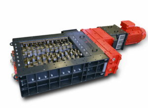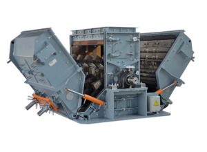 Double roll crusher with traditional V-belt drive for low and medium rock hardness.